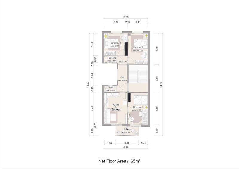 Zimmergrößen von 12 m²