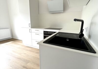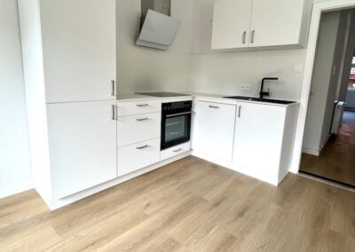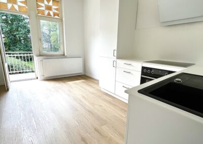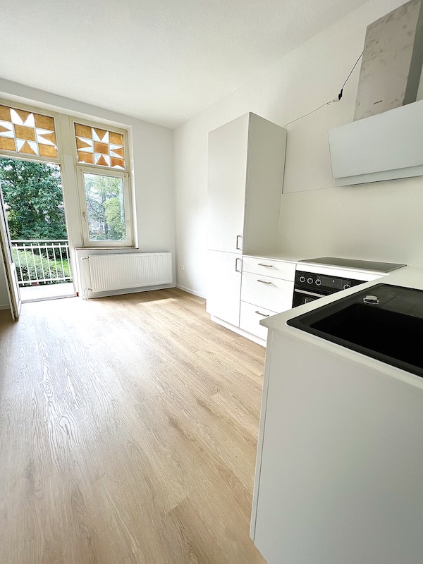 Darüber hinaus gibt es eine großzügige Gemeinschaftswohnküche und WLAN mit DSL 100MBit. Vom Wohnraum gelangt man auf den Balkon. Die Küche ist mit einer Einbauküche inkl. Herd, Backofen und Kühl-Gefrierkombination ausgestattet.