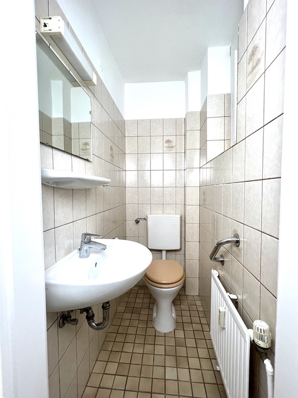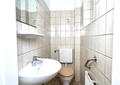 Es ist zusätzlich zum Duschbad ein separates WC vorhanden. Im Keller stehen Fahrradstellplätze und ein Trockenraum sowie eine Waschmaschine für die Hausgemeinschaft zur Verfügung.